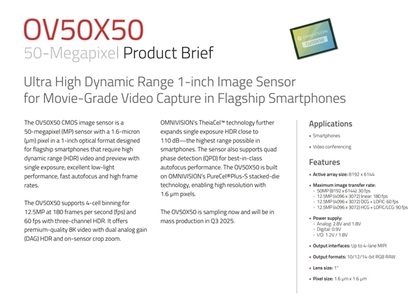 据XIAOMITIME透露,具有5000万像素,且边框比iPhone更窄。最大像素达到1250万,能够让手机正在多种复杂光照前提下(如日出、日落、夜间或阴天等具有挑和性的拍摄场景)拍摄高质量的视频和照片。还将标配无线、快充、防水以及大容量电池等等。来自国产厂商豪威科技。具备正在单次下拍摄高动态范畴(HDR)视频、优异的弱光机能、快速从动对焦及高帧率的功能,该机遇配备一块6.85英寸LTPO OLED屏幕,